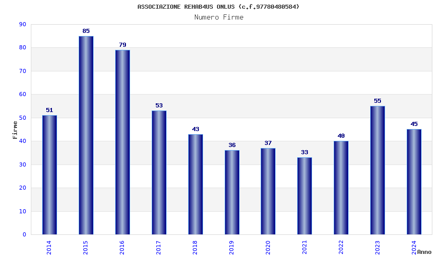 | Anno | Firme | Importi | Media | Naz. | Reg. | Prov. | Comu. |