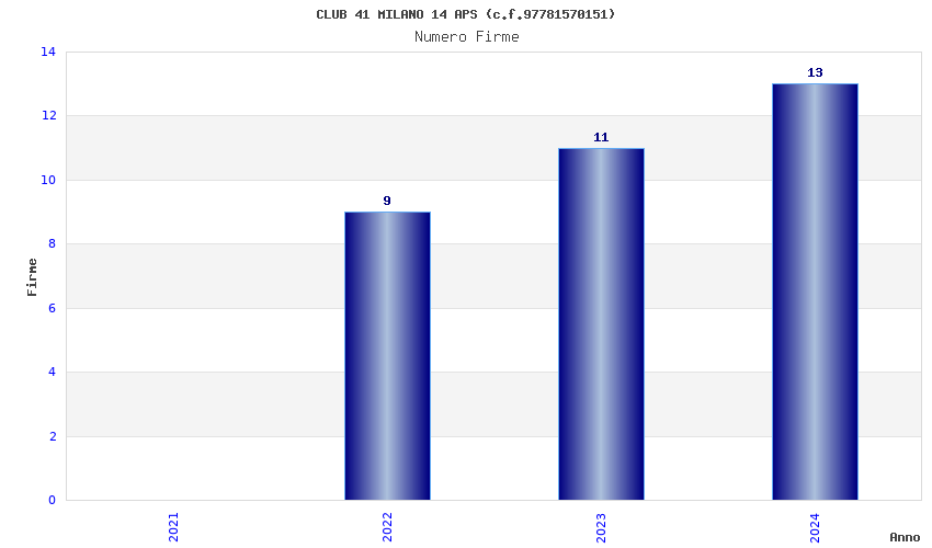| Anno | Firme | Importi | Media | Naz. | Reg. | Prov. | Comu. |