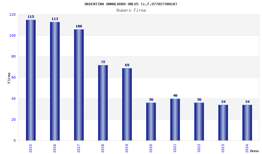 | Anno | Firme | Importi | Media | Naz. | Reg. | Prov. | Comu. |