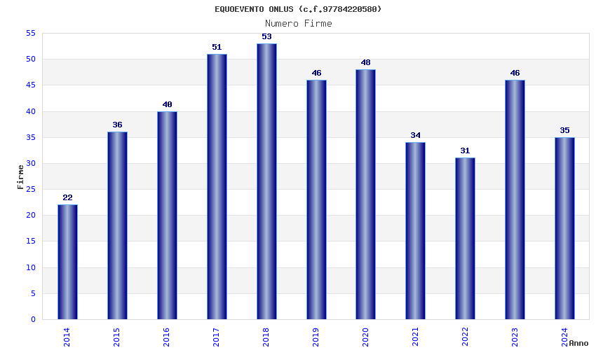 | Anno | Firme | Importi | Media | Naz. | Reg. | Prov. | Comu. |