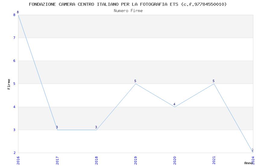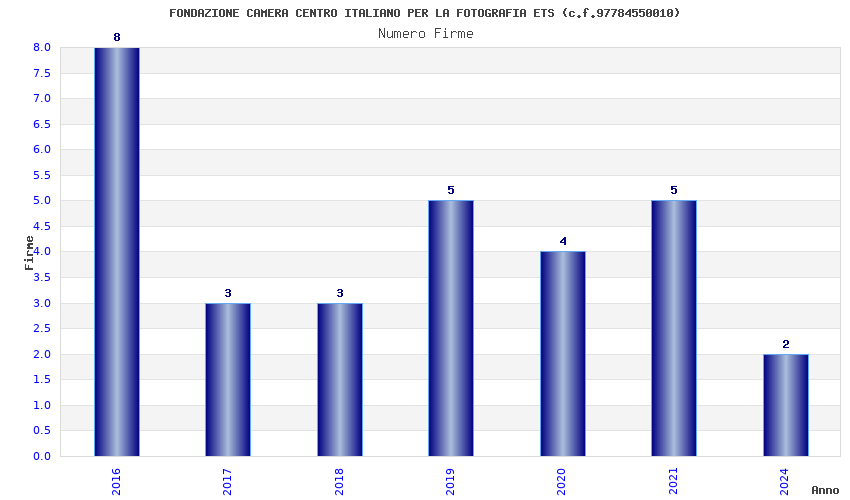 | Anno | Firme | Importi | Media | Naz. | Reg. | Prov. | Comu. |