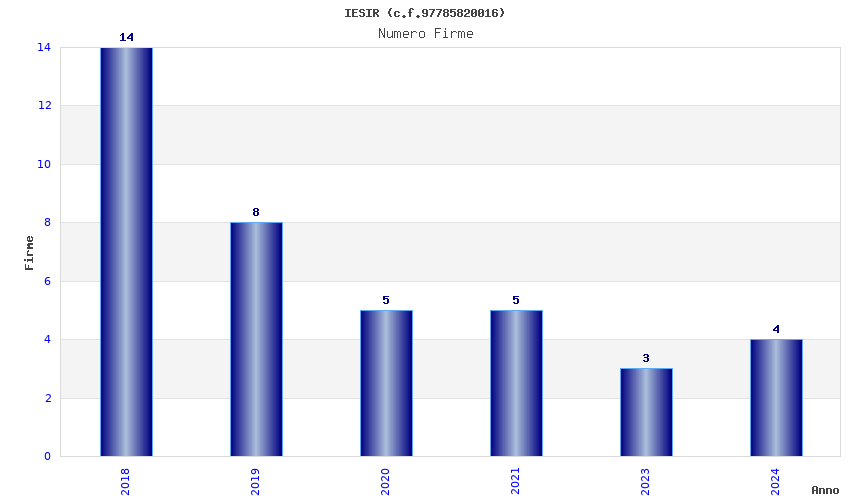 | Anno | Firme | Importi | Media | Naz. | Reg. | Prov. | Comu. |