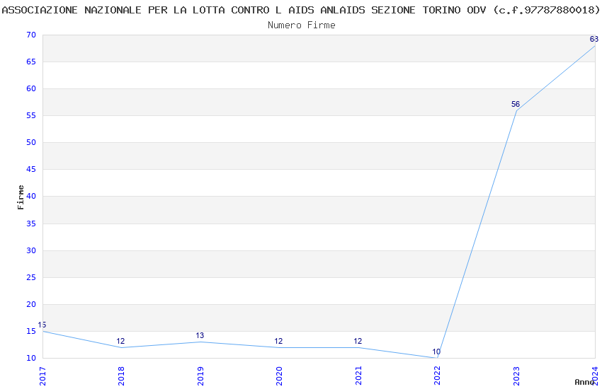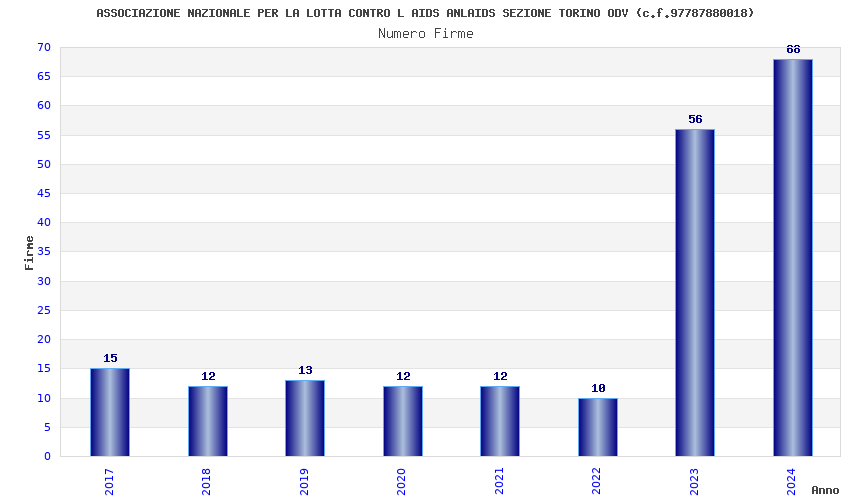 | Anno | Firme | Importi | Media | Naz. | Reg. | Prov. | Comu. |