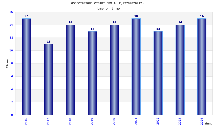 | 2016 | 15 | 1.615,61 | 107,71 | 25.877 | 2.126 | 1.081 | 519 |