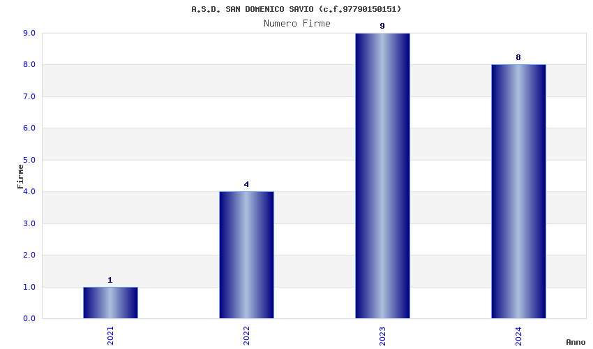 | Anno | Firme | Importi | Media | Naz. | Reg. | Prov. | Comu. |