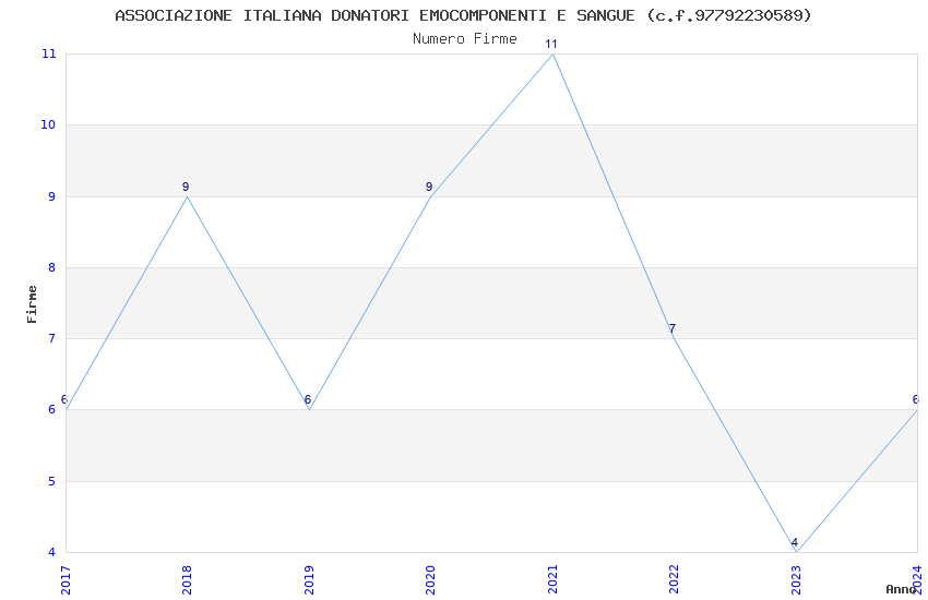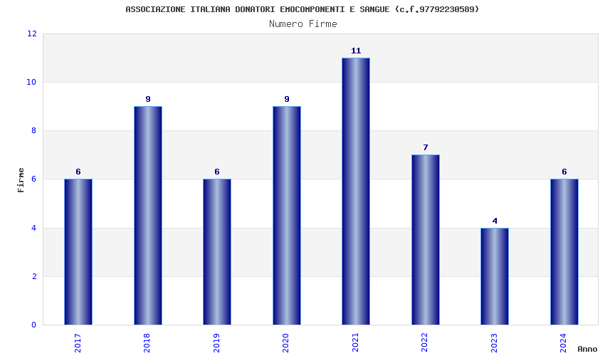 | Anno | Firme | Importi | Media | Naz. | Reg. | Prov. | Comu. |