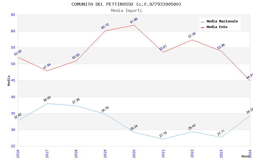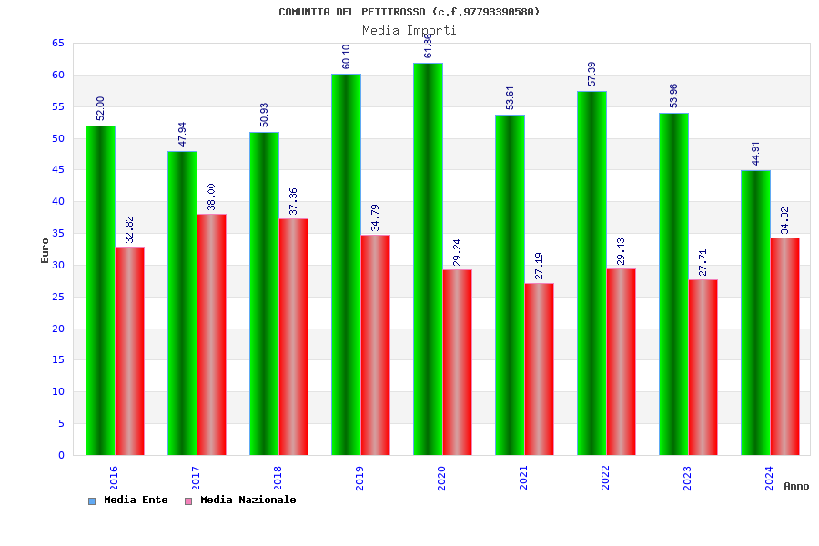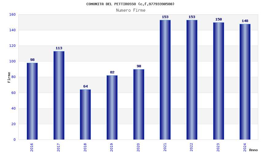 | Anno | Firme | Importi | Media | Naz. | Reg. | Prov. | Comu. |