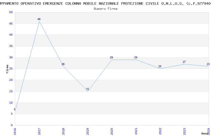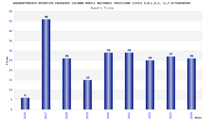 | Anno | Firme | Importi | Media | Naz. | Reg. | Prov. | Comu. |
