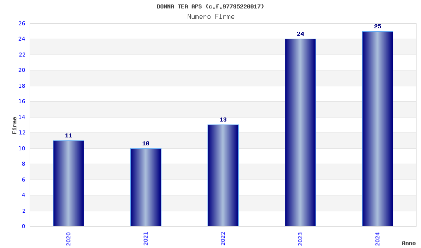 | Anno | Firme | Importi | Media | Naz. | Reg. | Prov. | Comu. |