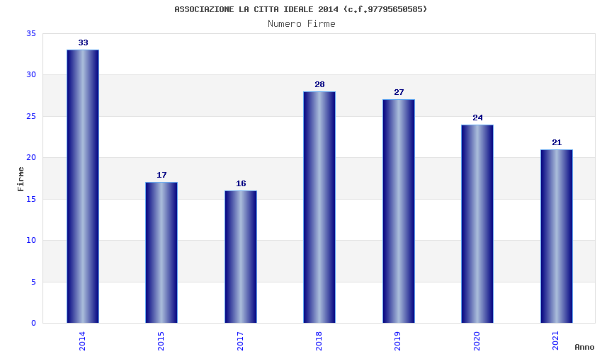 | Anno | Firme | Importi | Media | Naz. | Reg. | Prov. | Comu. |
