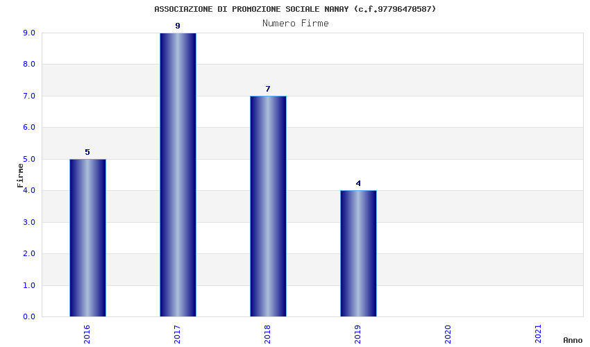 | Anno | Firme | Importi | Media | Naz. | Reg. | Prov. | Comu. |