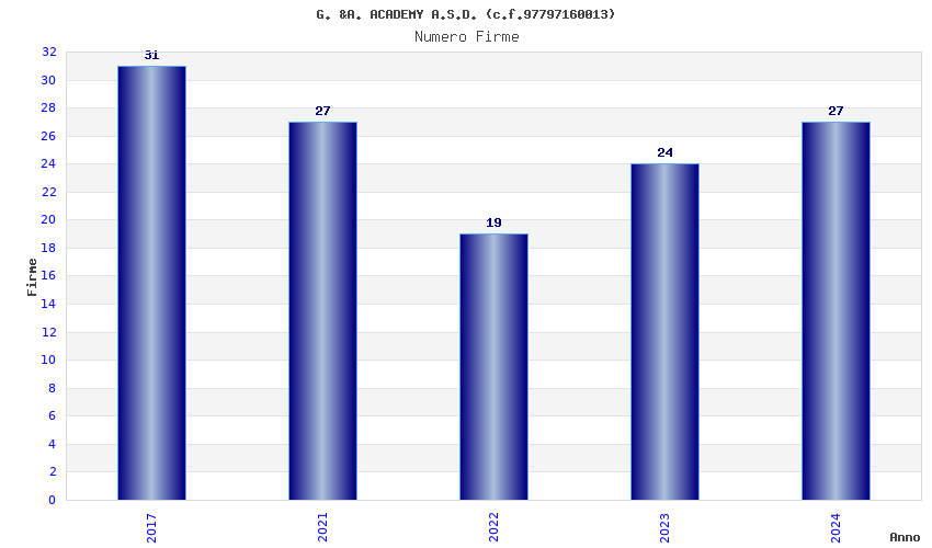 | Anno | Firme | Importi | Media | Naz. | Reg. | Prov. | Comu. |