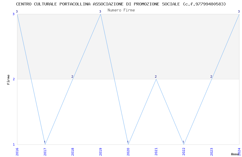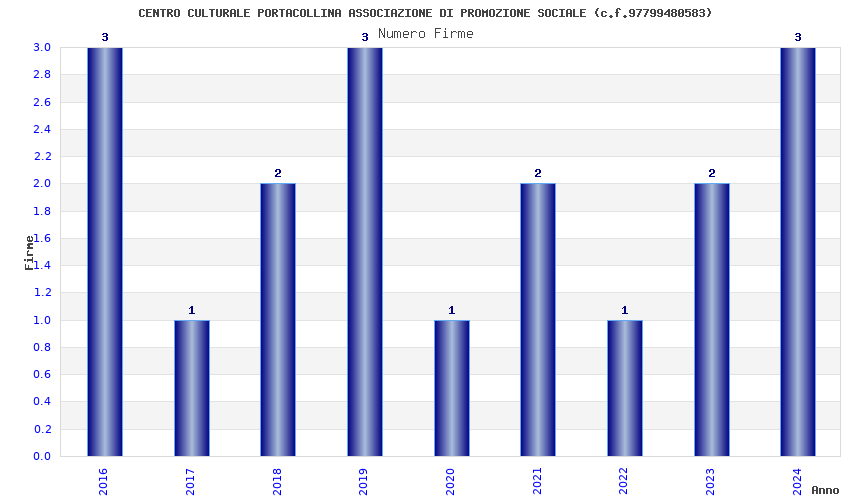 | Anno | Firme | Importi | Media | Naz. | Reg. | Prov. | Comu. |