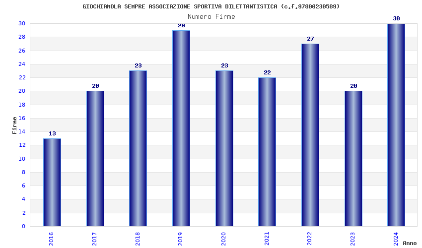| 2019 | 29 | 1.317,36 | 45,43 | 30.933 | 2.905 | 2.394 | 1.946 |