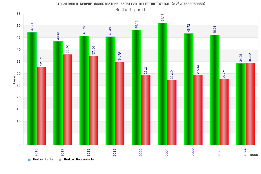 | Anno | Firme | Importi | Media | Naz. | Reg. | Prov. | Comu. |