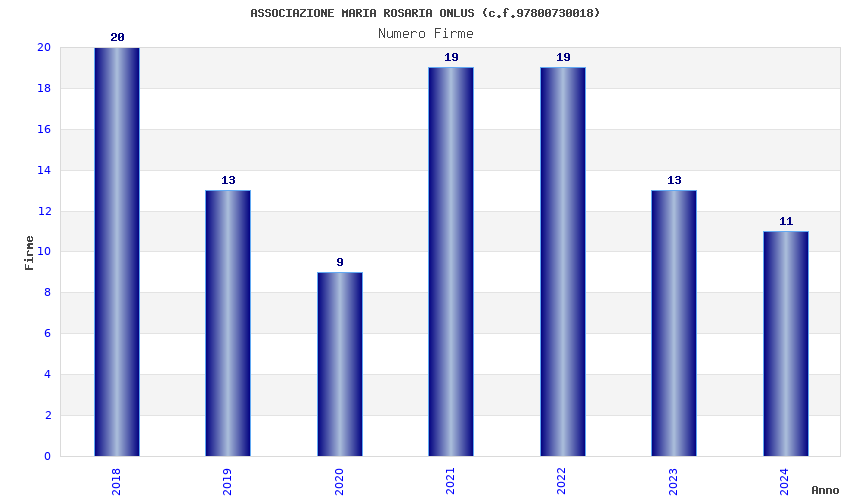| Anno | Firme | Importi | Media | Naz. | Reg. | Prov. | Comu. |