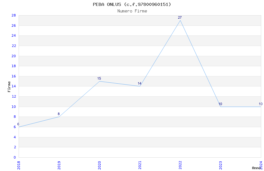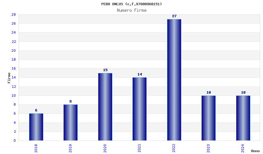 | Anno | Firme | Importi | Media | Naz. | Reg. | Prov. | Comu. |