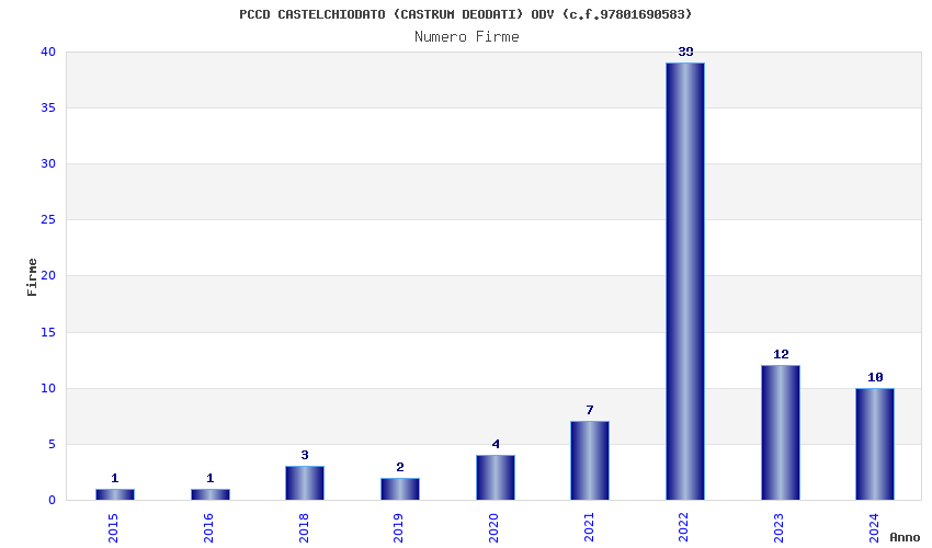 | Anno | Firme | Importi | Media | Naz. | Reg. | Prov. | Comu. |