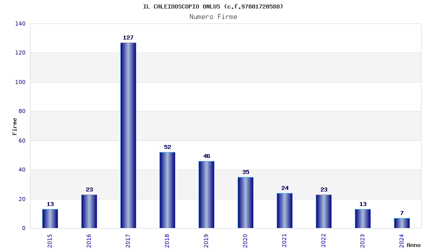 | Anno | Firme | Importi | Media | Naz. | Reg. | Prov. | Comu. |