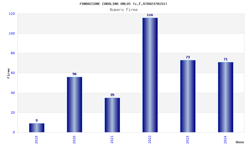 | Anno | Firme | Importi | Media | Naz. | Reg. | Prov. | Comu. |