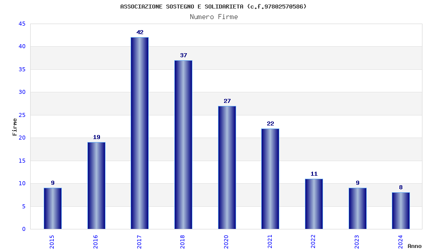 | Anno | Firme | Importi | Media | Naz. | Reg. | Prov. | Comu. |