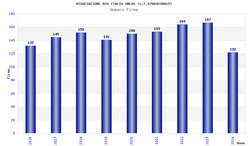 | Anno | Firme | Importi | Media | Naz. | Reg. | Prov. | Comu. |