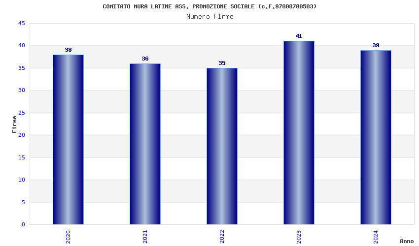 | Anno | Firme | Importi | Media | Naz. | Reg. | Prov. | Comu. |