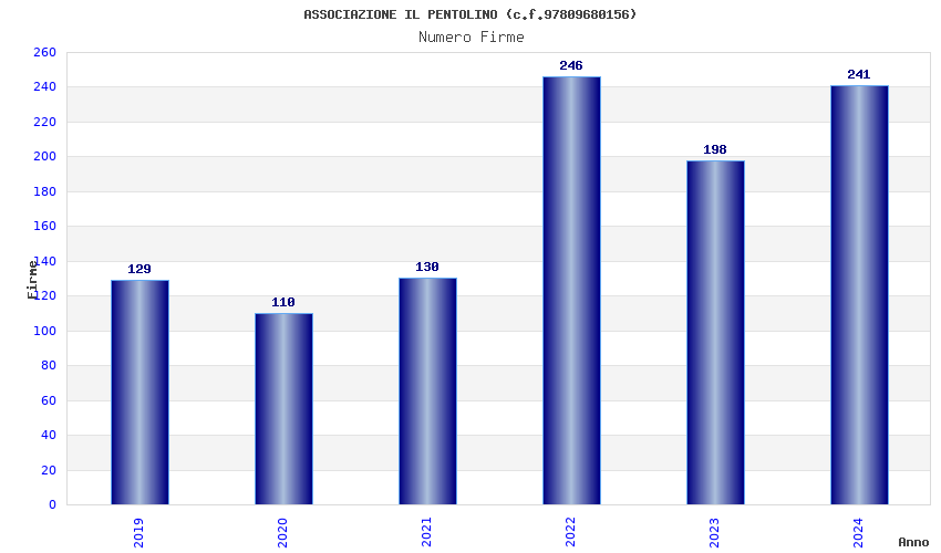| Anno | Firme | Importi | Media | Naz. | Reg. | Prov. | Comu. |