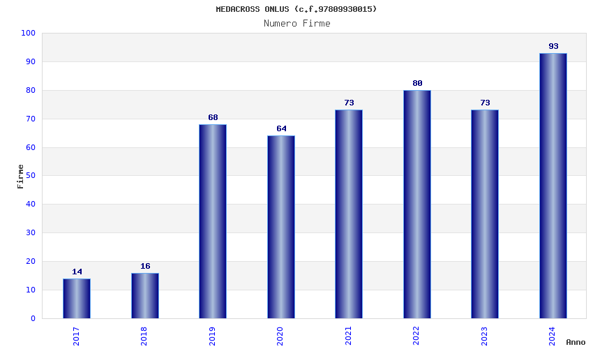 | Anno | Firme | Importi | Media | Naz. | Reg. | Prov. | Comu. |