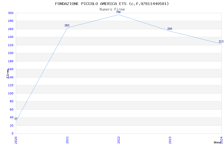 | Anno | Firme | Importi | Media | Naz. | Reg. | Prov. | Comu. |