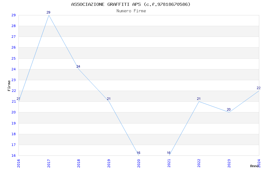 | 2016 | 21 | 1.300,65 | 61,94 | 29.041 | 2.659 | 2.200 | 1.824 |