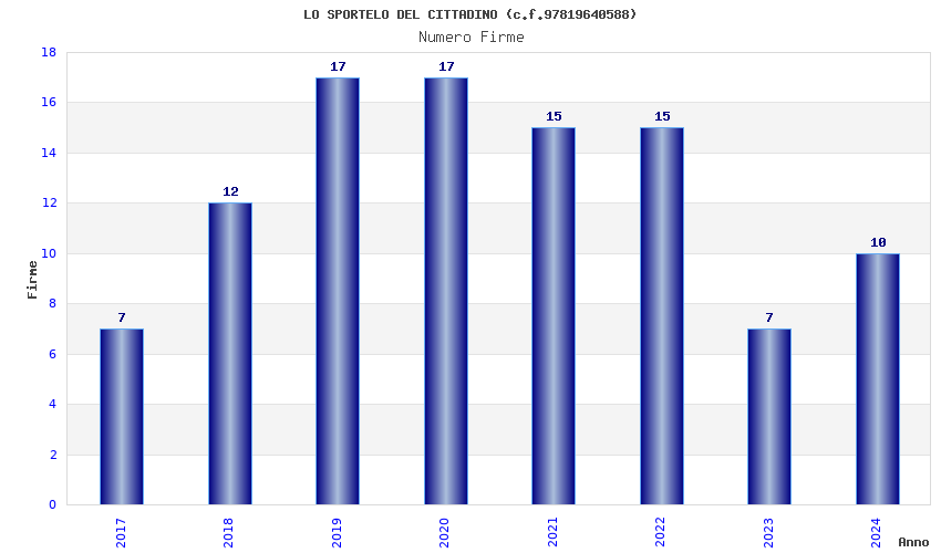 | Anno | Firme | Importi | Media | Naz. | Reg. | Prov. | Comu. |