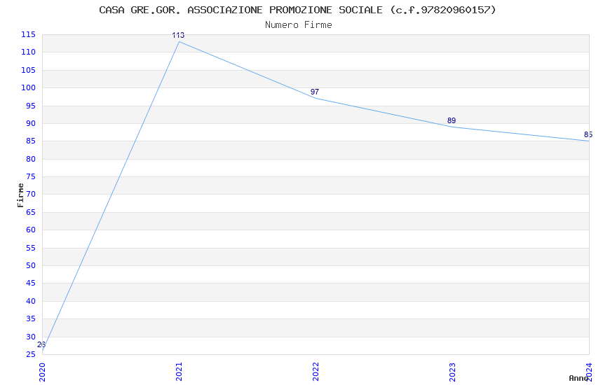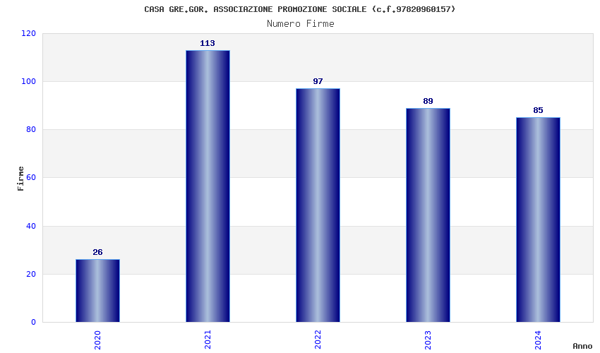 | Anno | Firme | Importi | Media | Naz. | Reg. | Prov. | Comu. |