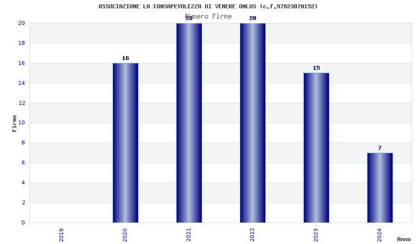 | Anno | Firme | Importi | Media | Naz. | Reg. | Prov. | Comu. |