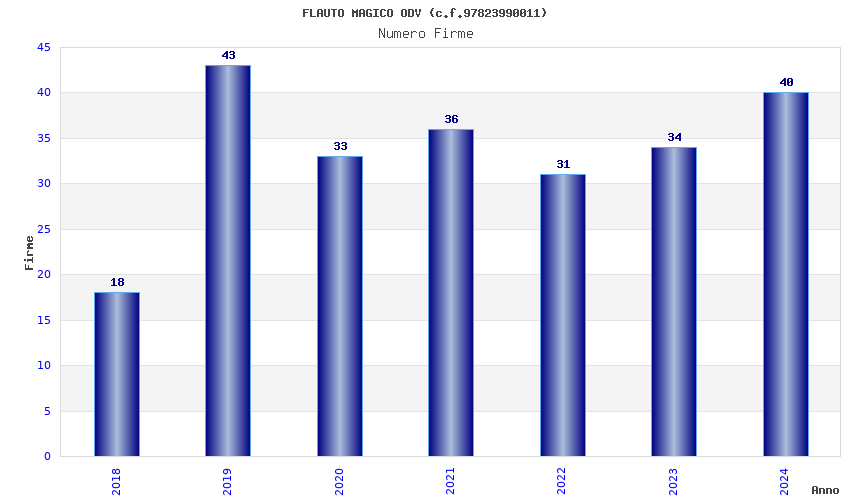 | Anno | Firme | Importi | Media | Naz. | Reg. | Prov. | Comu. |