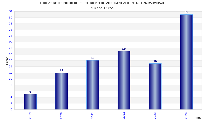 | Anno | Firme | Importi | Media | Naz. | Reg. | Prov. | Comu. |