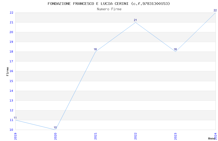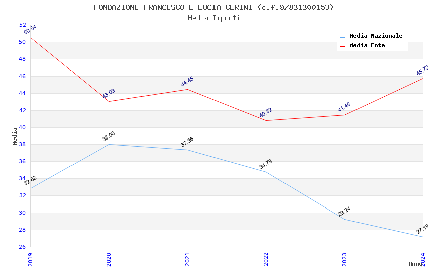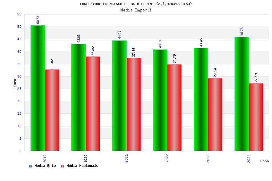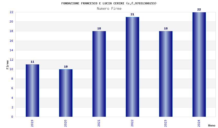 | Anno | Firme | Importi | Media | Naz. | Reg. | Prov. | Comu. |
