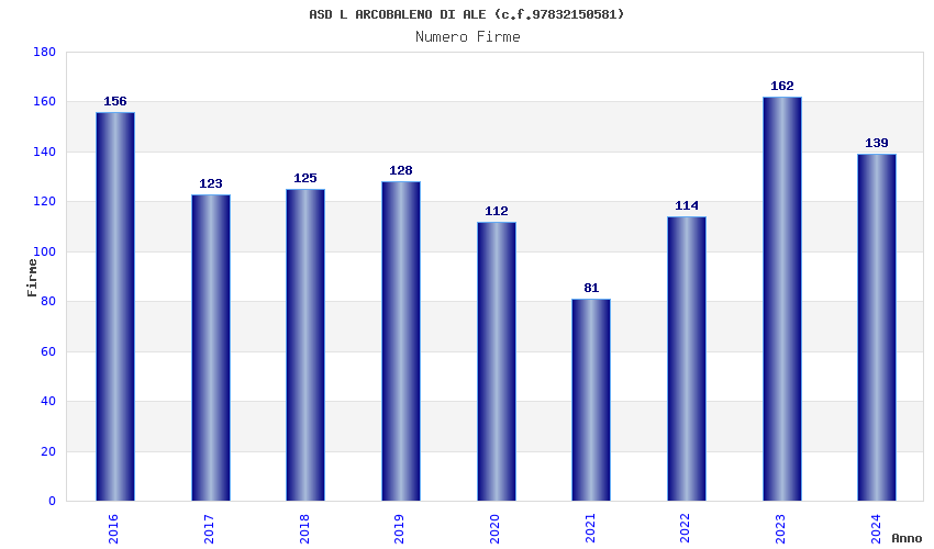 | 2016 | 156 | 5.396,25 | 34,59 | 10.180 | 1.200 | 1.075 | 938 |