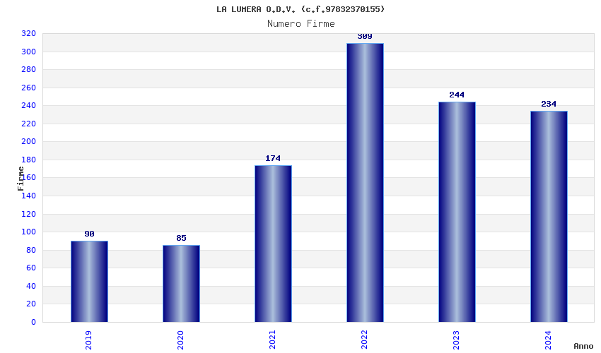 Anno Firme Importi Media Naz. Reg. Prov. Comu.