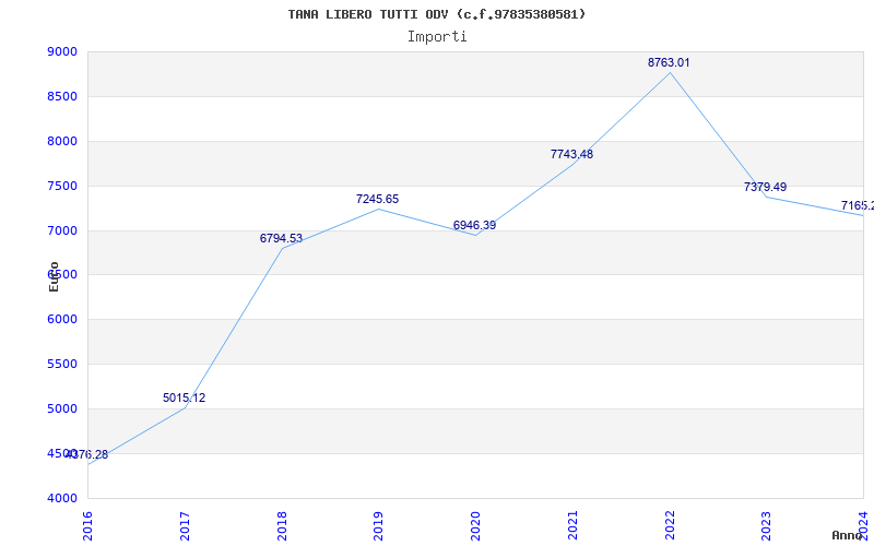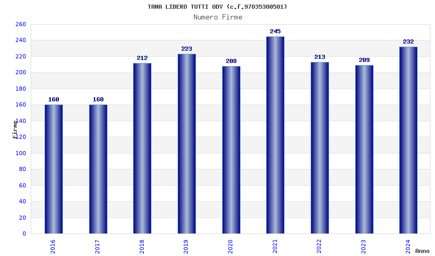 | Anno | Firme | Importi | Media | Naz. | Reg. | Prov. | Comu. |