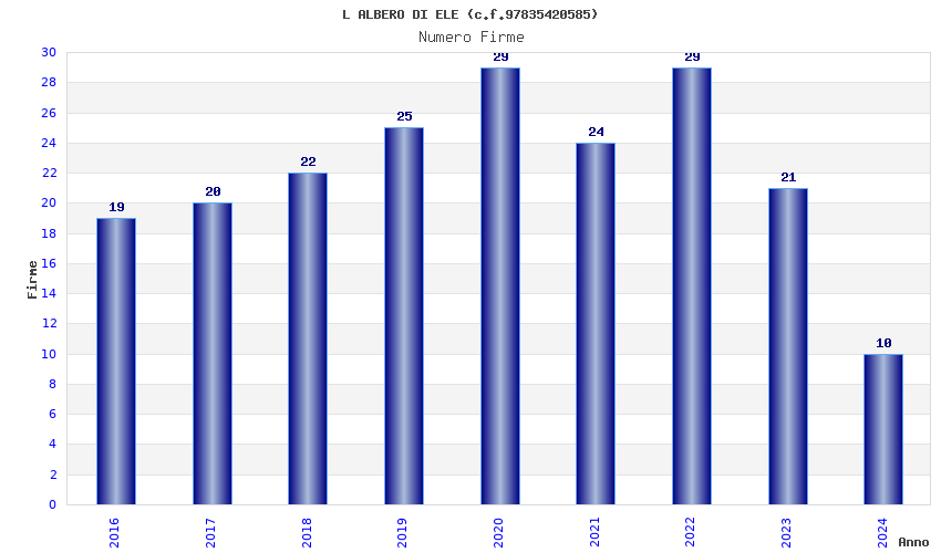 | Anno | Firme | Importi | Media | Naz. | Reg. | Prov. | Comu. |