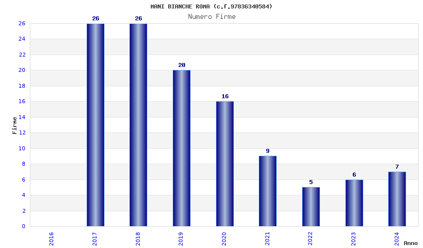 | Anno | Firme | Importi | Media | Naz. | Reg. | Prov. | Comu. |