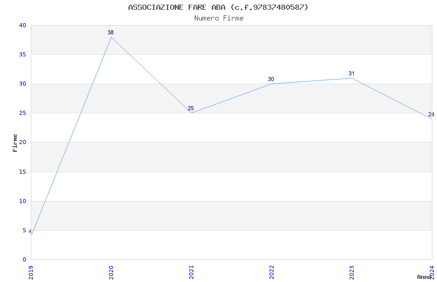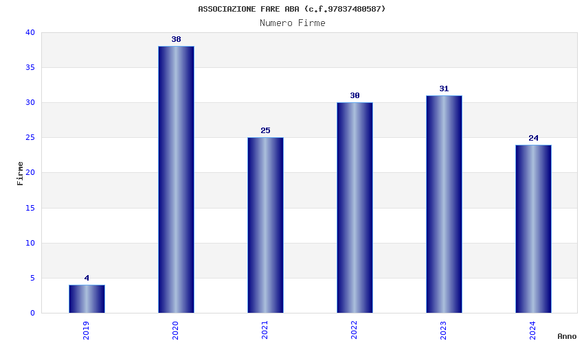 | Anno | Firme | Importi | Media | Naz. | Reg. | Prov. | Comu. |