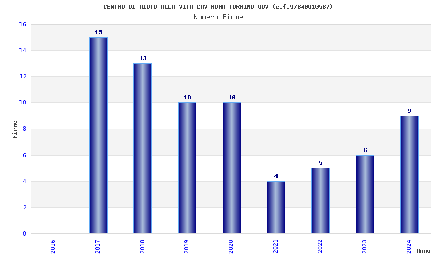 | Anno | Firme | Importi | Media | Naz. | Reg. | Prov. | Comu. |