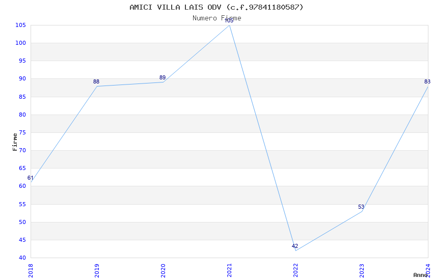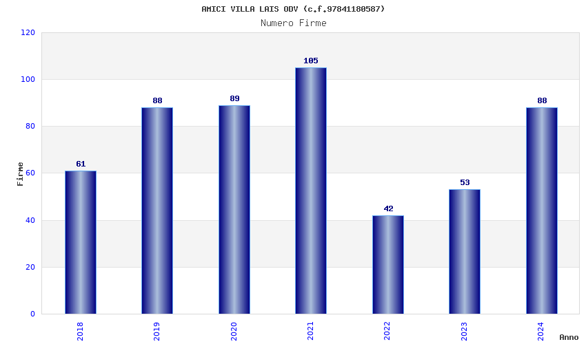 | Anno | Firme | Importi | Media | Naz. | Reg. | Prov. | Comu. |