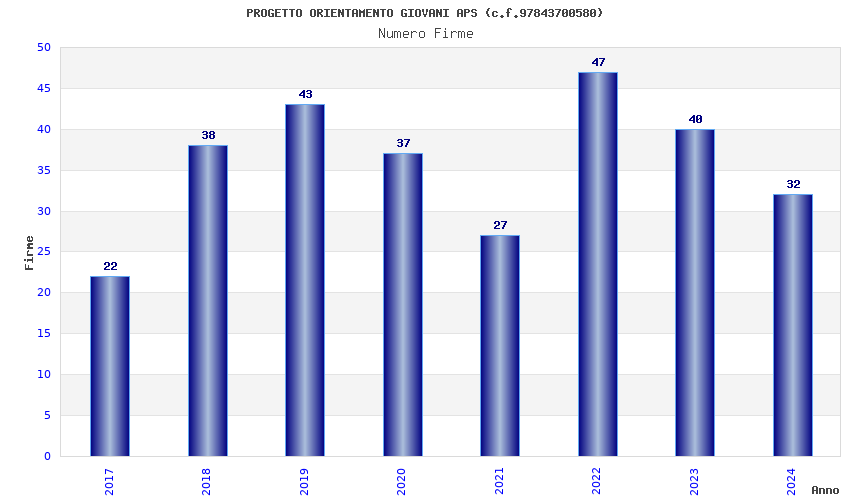 | Anno | Firme | Importi | Media | Naz. | Reg. | Prov. | Comu. |
