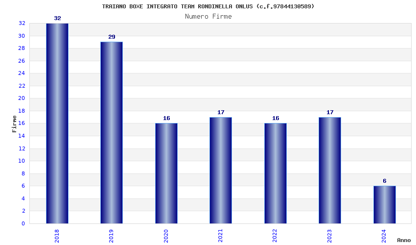 | Anno | Firme | Importi | Media | Naz. | Reg. | Prov. | Comu. |