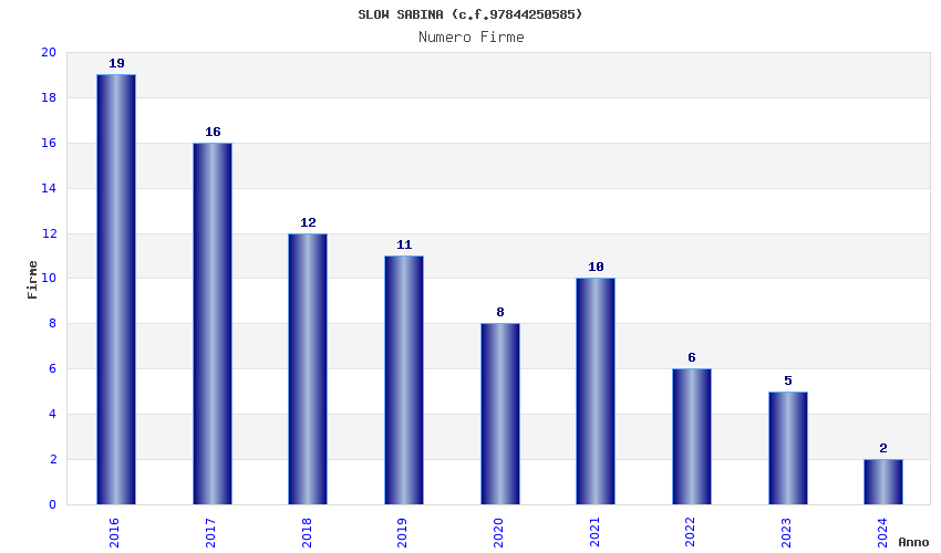 | Anno | Firme | Importi | Media | Naz. | Reg. | Prov. | Comu. |