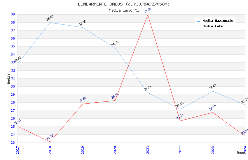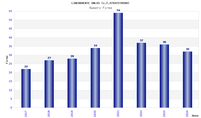 | Anno | Firme | Importi | Media | Naz. | Reg. | Prov. | Comu. |