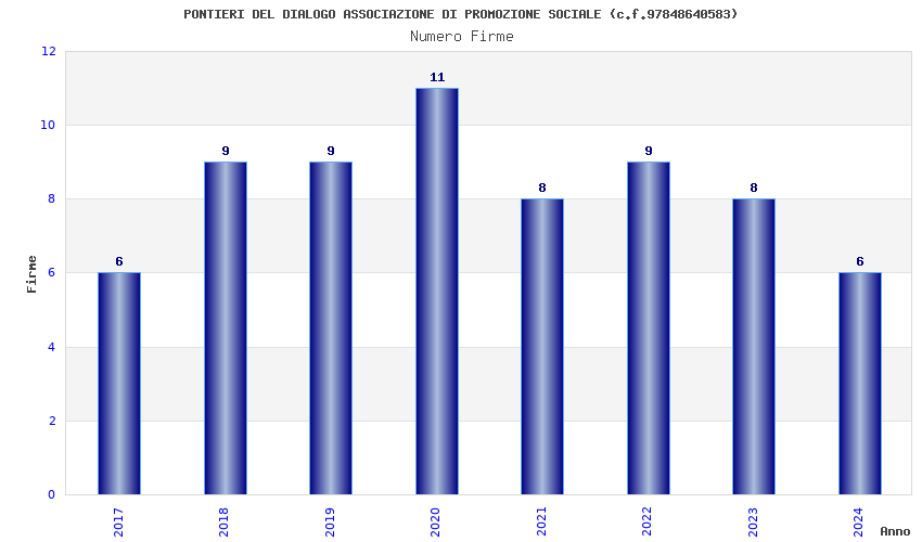 | Anno | Firme | Importi | Media | Naz. | Reg. | Prov. | Comu. |